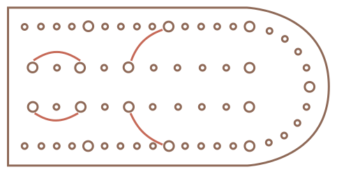 There is a deluxe version of the game (linked picture above) in the Metropolitan Museum of Art in New York. Despite appearances, it is not a billiard table, but a tiny toy just 15 centimetres long. The stakes in the picture are the counters, five per player, used during play. The Met has six high-resolution photos where you can zoom in for a closer look.This Egyptian grave offering from Thebes explains the order of play through the 29 holes by each player as follows: