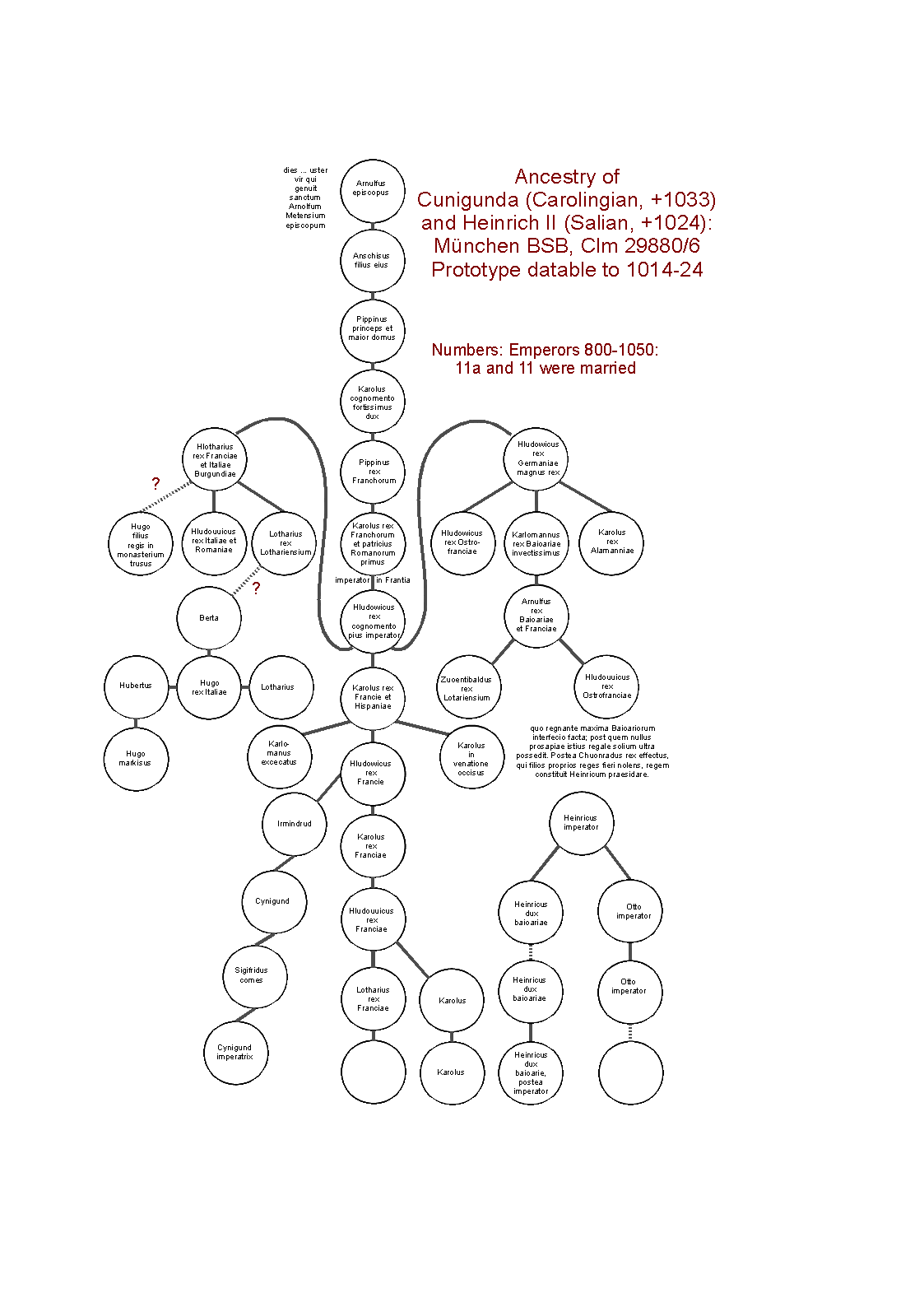 Schmid's study of the Stemma was especially interesting. He instantly recognized that its subject and focus is Cunigunde (at the bottom left), not Charlemagne or any of the figures high up the diagram.