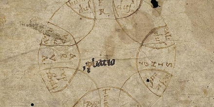 The diagrams above comprise a diagram of the planets in Reg. lat. 123 (top; Murdoch 249) and a test drawing (probatio) in Pal. lat. 1581 (centre; Murdoch 014) at the BAV.