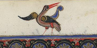 Its texts are mainly liturgical but there are also texts on chronology, geography, astronomy, mensuration, philosophy and history. I'm not aware if any of these are unique, but it's great to just browse this thick codex and admire the care with which it was made. From the illuminations, here is a fine red-beaked bird from folio 213r: