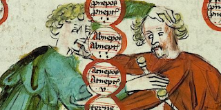 - Pal.lat.411, a richly decorated textbook of law completed 1417 by Winandus de Stega at Heidelberg University dealing with four arbores. Here are a couple of furiously fighting heirs (fol 7v) under an arbor hereditatis (discussed by Hermann Schadt at page 309-313 of Arbores: see the previous post).