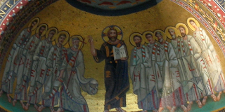 From the interior of the old palace we can see a mosaic ceiling of Byzantine style in the triclinium as Grimaldi saw it: