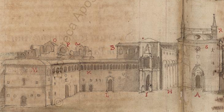 Grimaldi's sketch of the palace before the alterations shows it thus, with numbering indexed to specific features: