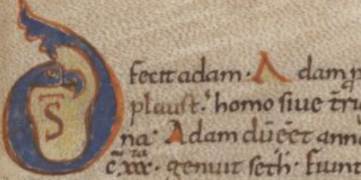 I prize it as a source of information about the Great Stemma beginning at folio 359r (see my Ripoll Bible page) and for an ingenious system of markup that enabled graphic files to be compressed (see my earlier blog post on that topic). Here is the start of that remarkable section: