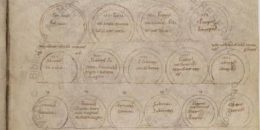 Note how the number of circles increases by one with each row as you follow it downwards. The scheme is a medieval revision of the so-called Type 4 arbor consanguinatis, as defined by  Hermann Schadt - see my Missing Manual (DOI: 10.13140/RG.2.1.4283.8002) for more information about this - Manuscript Details