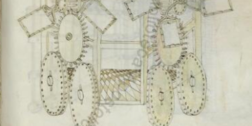 On fol. 168v there's a tortoise, a machine for getting up close to walls and battering them down, and of course it even looks like a tortoise: