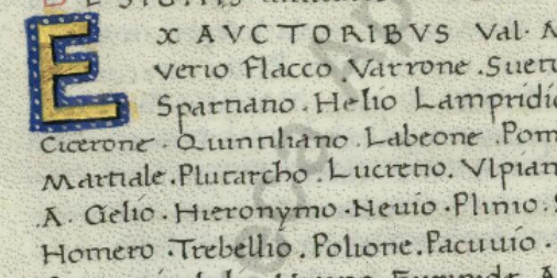 - Vat.lat.3281, a magnificent old palimpsest containing fragments from a 5th- or 6th-century Vulgate Bible, scribed in southern Italy perhaps as soon as 50 years after the death of Jerome. It was torn apart and re-used in the 12th century for the Achilleid of Statius in Beneventan script (Lowe 1 14, Trismegistos 66110).