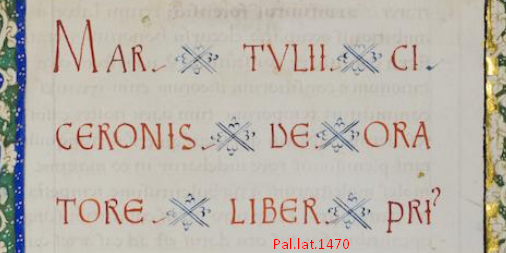 - Pal. lat. 1470 Cicero, Marcus Tullius: De oratore (Italien, 15. Jh.), the R witness: