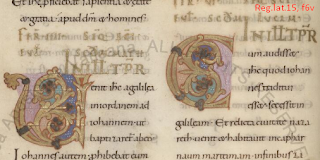 - Reg.lat.8, psalms, Versio Gallicana (with touches of the Vetus Latina), annotated with the help of a Greek text. Incipit, beatus vir qui non abiit in consilio impiorum. This is a 12th-century manuscript from Germany or Bohemia and has the Beuron number 438 (my list). No illuminations, but rubrics throughout.