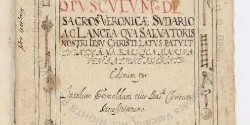 - Arch.Cap.S.Pietro.H.3.pt.bis, collection of materials on Shroud of Veronica. Curious because title page is got up like that of a printed book, indicating how dominant print style had become by 1616.