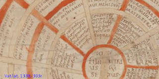 - Vat.lat.1382, Bottoni, Glossa Ordinaria, with some fine arbor juris diagrams, one of which has this interesting detail in the bottom panel: