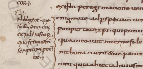 The example above is from 14v. Notice the big difference of the two (contemporary) hands. The codex is also celebrated as the sole mediator of the writings of Pacian of Barcelona, and here I will let Pierre explain: