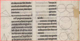 This 13th-century codex contains a translation from the Arabic commonly ascribed to Adelard of Bath. What's impressive as a matter of book history is the strict columnar layout, the variation in text size, the conscious manipulation of white space, the inviting optics of the drawings. Everything gives the impression of a well-designed modern book, though this particular one is obviously unfinished, since the space left for the illuminated initials (example above) remains empty.