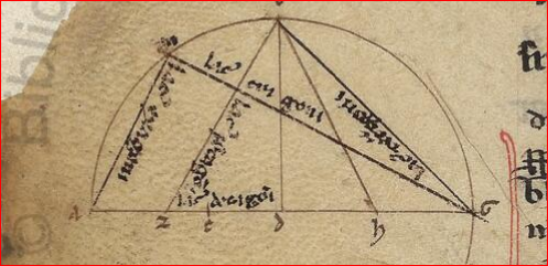 16. Reg.lat.1012,,The last folio is the beginning of the geometrical text De conicis (Cum continuatur inter punctum aliquod et lineam) (12c-13c) by Gerard of Cremona, translated from Apollonius of Perga. This diagram is on the first folio: