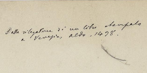 The latter item, ELMSS number 2194, was found in the binding of a book printed 1498 at the Aldine press in Venice: