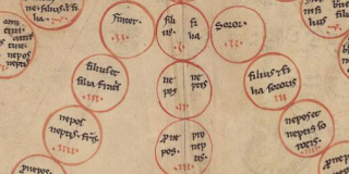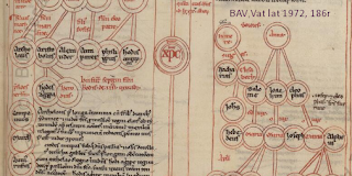 - Vat.lat.1972, works by 12th-century University of Paris professors Petrus Comestor (Historia Scholastica) and Petrus Pictavienis with lots of diagrams in the end papers, including PP's multi-page universal-history diagram, the Compendium: