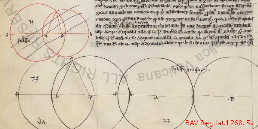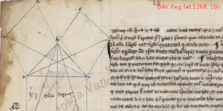 In his Album of Science I, John Murdoch highlighted corrections in a Vatican manuscript of Euclid, Reg.lat.1268, which came online in color a few days ago. Since last year it had only been available in murky black and white. Below is Murdoch's always readable discussion of these diagrams: