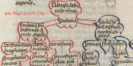 - Vat.lat.1175.pt.1, a great 12th-century work that uses stemmata to organize the teaching material: Radulfus Ardens, Speculum universale