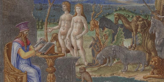 I doubt if the couple in the picture are Adam and Eve as sometimes claimed. The notion of man as an animal species goes back long before before Darwin. Aristotle had no doubt about this matter, uncomfortable as it is for some people. The History of Animals explicitly treats humans as part of the subject and the miniaturist (several candidates are mentioned by Monfasani) puts this front and centre.