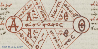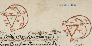 2. Reg.gr.116 (Upgraded to HQ), see Pinakes. Contains a logical diagram in a discussion of Aristotle. The Cambridge Intellectual History of Byzantium (eds Anthony Kaldellis, Niketas Siniossoglou) says the explanation of the diagram (first below) in the Prior Analytics is attributed to an otherwise Alousianos: