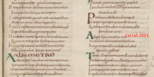 - Vat.lat.3803 (Upgraded to HQ), a ninth-century manuscript of the works of Ennodius of Pavia, a 6th-century bishop. Square format, two columns: