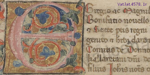 - Vat.lat.4578 (Upgraded to HQ), apocryphal texts, 14th century, with Evangelium Nicodemi, ff. 35v-37v Evangelium Thomae de infantia Salvatoris, ff. 37v-44r Liber de ortu beatae Mariae et infantia Salvatoris, ff. 32r-35r (see Mirabile); also includes a mathematical text, see Jordanus