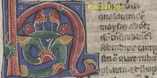 - Ross.128, an Old Testament, with upper headings mostly guillotined off in rebinding: notable initials