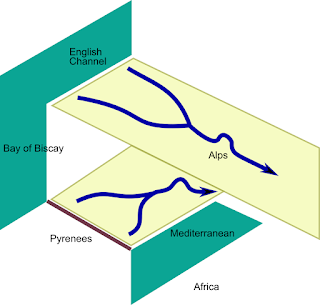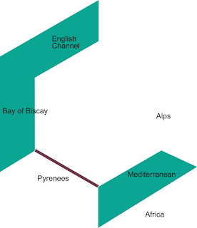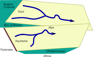 To grasp how this odd watery border has arisen, the best tool of thought is the hexagon, a meme which normally denotes the political frontiers of modern France, but which I will apply to the natural limits, mountainous and marine, of Roman-era Aquitania and transmontane Gaul as far as the left bank of the Rhine:
