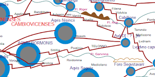 Of the remaining thin black lines, some represent now indeterminate sub-networks, such as near Hostilia, where the Tabula's original layout has been lost, or one or two borderline cases, such as a detour through Todo (Tvder), which may have been part of the first layout. But for the rest, I would argue they are no more than ancillary mark-up, not part of the primitive design.