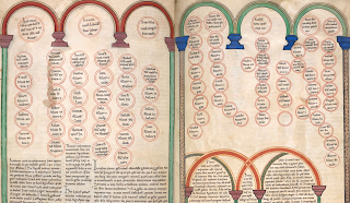 A late-antique "family tree" of Jesus, the Great Stemma (above), had been spreading through Iberia in the seventh century and it showed a legendary sheep-farmer, Joachim, in pride of place. Isidore of Seville thought this claim was nonsense. We don't know if Isidore himself altered the chart, but someone very smart and aligned with Isidore's thought took pen and rewired the "tree", cutting out poor Jo like a gastric bypass.