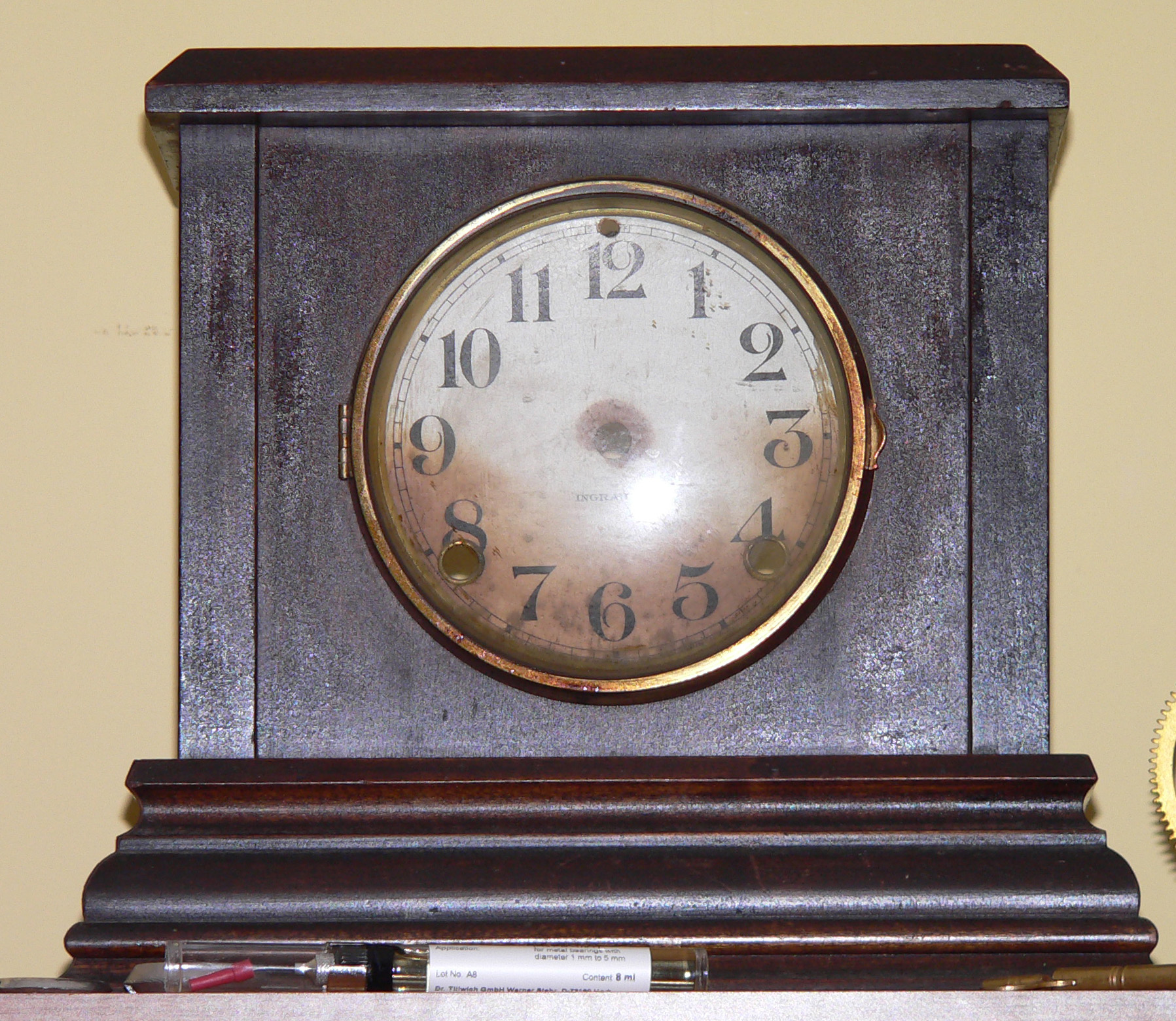 Ingraham 8-day clock in repair