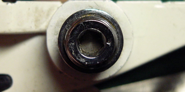 The inside of the threaded shaft of the pedal, showing an internal hex fitting