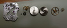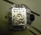 Power Train from JLC875 The power train, Winding train and part of the going train of the JLC 875 movement. From left to right: 3/4 plate with the winding gears and click, center wheel(brass), interface gears from the mainspring barrel to the RdM and winding train, two spring barrels, second barrel wheel and the second wheel. aperture=f/4.0 focal=7.4mm (35mm equivalent: 35mm) exposure=0.017 s (1/60) |