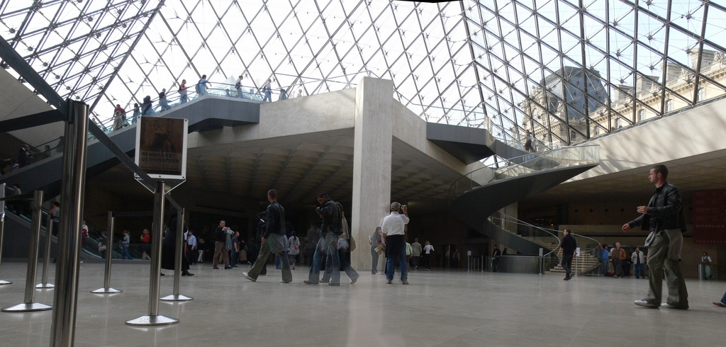 [Louvre] The area inside the entrance pyramid of the Louvre, composite of two photos.