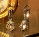 Pearl and Wt. Gold Earings [Louvre d'Antiqueties] A pair of large white gold earings, decorated with Tahitian pearls, by T. Vendôme. The pearls counter-balance the horizontal elements aperture=f/3.6 focal=7.4mm (35mm equivalent: 35mm) exposure=0.025 s (1/40) |