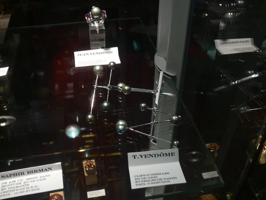 [Louvre d'Antiquities] A massive pair of 18kt white gold earings by T. Vendôme, made of horizontal bars balanced with multi-color Tahitian pearls.