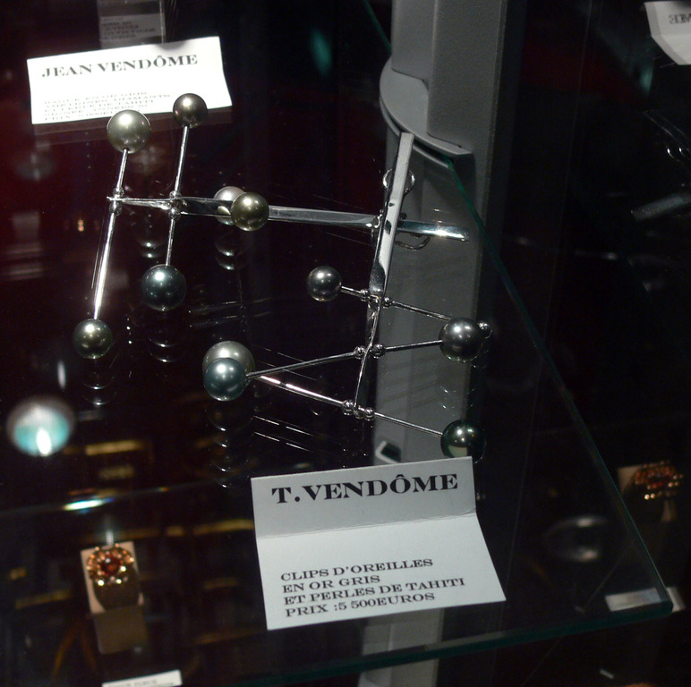 [Louvre d'Antiqueties] A pair of large white gold earings, decorated with Tahitian pearls, by T. Vendôme. The pearls counter-balance the horizontal elements