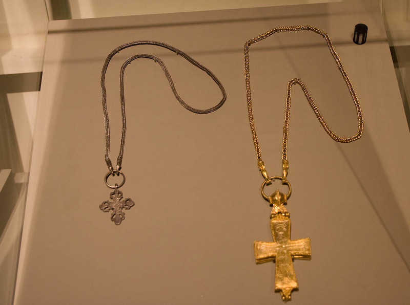[Cluny] A gold necklace in box stick, and a silver piece in Trichinoply