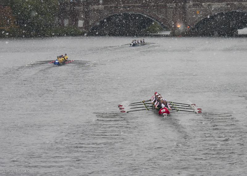 Boston University Men's Crew being passed by Columbia University
