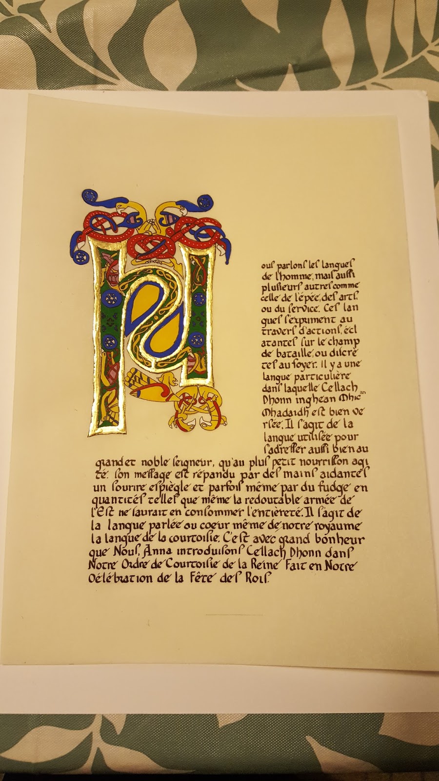 I was asked by the talented crew putting together the vigil book for Kennimathor Geirrson to help with the illuminations. Ken (like Matthias) is of the knightly lineage of Earl Seannan an Chasur so this post has a few familiar heraldic beasties.