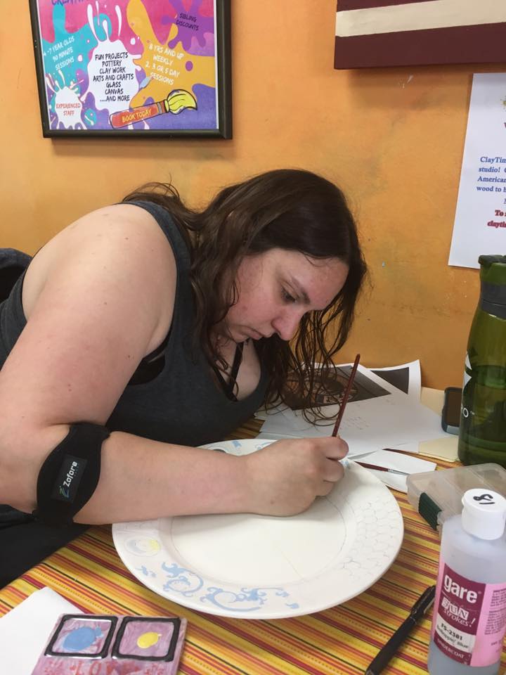 Claytime was enormously accommodating to my long painting sessions and spreading out on the table at points.  It turns out that when you're happy to share a table with other people (I'll get to that) and you behave like a normal human, they love you.  After each session, I took the plate home and thought about the next steps.