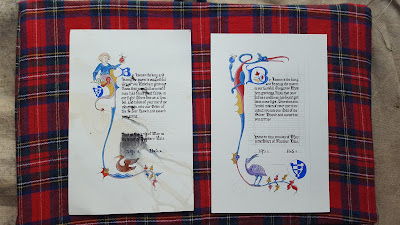 This scroll was another piece of scroll karma where I picked art that connected with the recipient so much more so than I ever thought.  When I got the assignment, the recommendation didn't say a whole lot about the recipient and the recommender was different than the listed contact.  Being on a tight timeline, I used my time to practice the hand and do some additions to the art I had set aside for this.