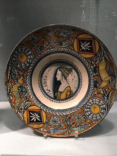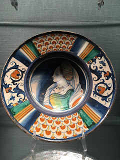 And now we get to the part where I dreaded working on this...the protrait.  It's been said elsewhere in my blog that I hate drawing people.  I feel like a massive art-impostor trying to draw people because I cannot make them look right.  The amount of sketches I threw out that no one saw or that were drawn,had comments,hated, and then threw out are numerous.  Part of my problem was fear of the derp face (though it's period) and the other part was trying to blend a real like protrait style with the majolica style.  I ended up going with just a majolica portrait after receiving some wise and balanced input.