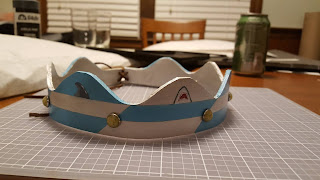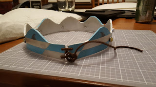 I had the good fortune to have a leather coronet pattern around already...and the terrible sense to decide it wasn't right and that I should make a new one and do a bunch of math for it.  If you've worked in the same room as me while I'm going a scroll layout, you know I have a hard time with that math.