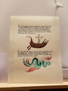 Above is the finished beads. Sergei's are the large beads in the front, mine are the smaller ones in the back. I joke that he made "him-sized" beads and I made "me-sized" beads. You can see the scale difference in the picture below while they are in my hand.