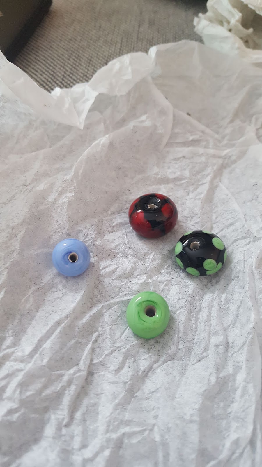 My green bead also shows different dot placement as well as stacked dots. |