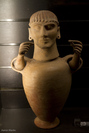 ![]() Male Chiusi Canoptic [Louvre] (in reference to 4 similar pieces) [Louvre] This type of ossuary in terra-cotta, improperly called a "Canoptic" due to similarities with the Egyptian Canoptic jars for the vicera of mummies, is a design unique to the region of Chiusi in the 7th and 6th centuries. They were placed in a large vase, set into the ground. Inside the large vase it sat on a seat of terra-cotta that resembled the bronze thrones of the Villanova period. The cover was modeled in the form of a human head, and the later ones have articulated arms attached to humanize the body of the jar, where the ashes of the deceased were placed. (Caption from the Louvre, translated by Aaron Macks, 2009) aperture=f2.8 focal length: 50.0 mm exposure 1/80 sec ISO: 800 |