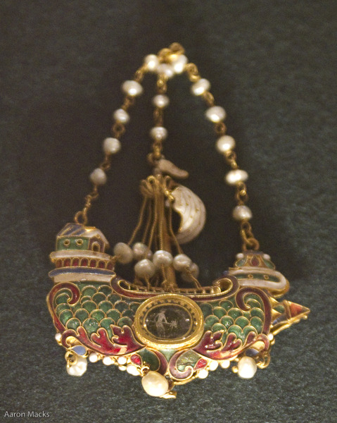 [Louvre] Enameled gold, pearls, painting under rock crystal Italy 16th Century
