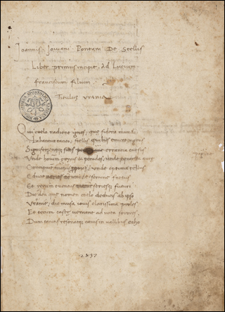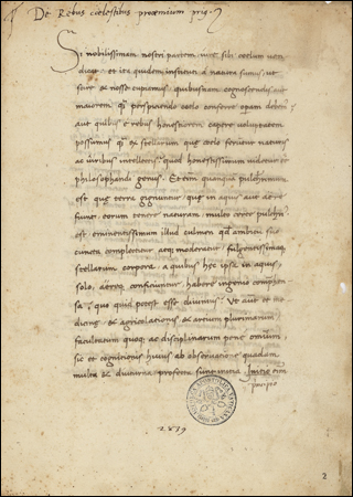 Incipit: De rebus coelestibus proemium prig. Si nobilissimam nostri partem