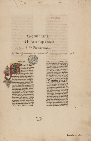 Vat.lat.2264, Dominicus de Sancto Geminiano and Symon de Hencia Commentaria in Causus, Tractatum de consecratione Decreti and Tractatus de Poenitentiia (15th C)